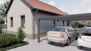 Az alapárban lapostetős és magastetős kivitel kérhető, magastetős kivitel esetén sík antracit Terrán betoncserép vagy piros hullámos betoncserép választható.