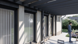 Terasz és bejárat felett/mellett a falra szerelt LED kültéri lámpa része az alapfelszerelésnek, melyek kívülről és belülről is kapcsolhatóak.