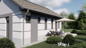 there is 15 cm of mineral fiber insulation inside the wall, which receives 15 cm of graphite EPS thermal insulation from the outside as standard (Thermomaster Grafit Akril thermal insulation system, in white) U value 0.135 W/m2K, requirement value 0.24 W/m2K, i.e. 40% better than the requirement value.