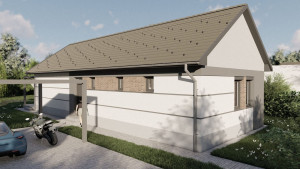 Az alapárban lapostetős és magastetős kivitel kérhető, magastetős kivitel esetén sík antracit Terrán betoncserép vagy piros hullámos betoncserép választható.