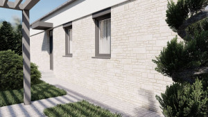 Die Wärmedämmung der Fassade und des Sockels, Gesimse, Außenschalter und Beleuchtungskörper werden vor Ort hergestellt.